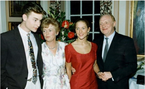 (Stephen Kinnock and father Neil; pictured with their respective handlers)