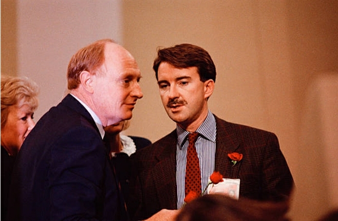 (Above) Neil Kinnock receives instructions from his Communications Director.